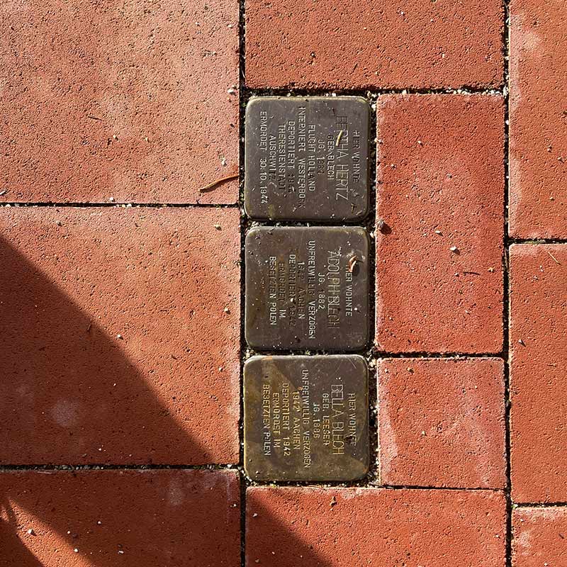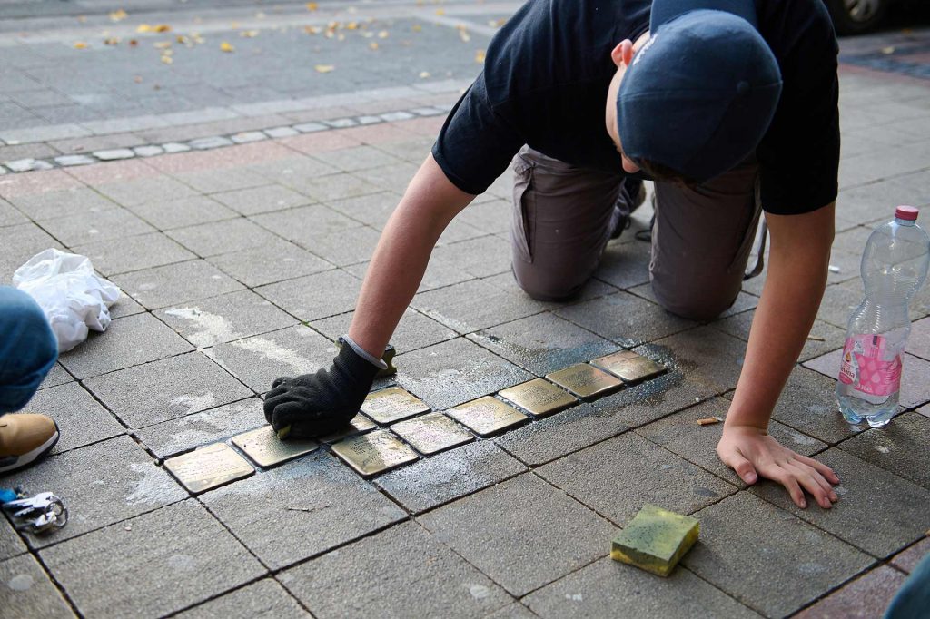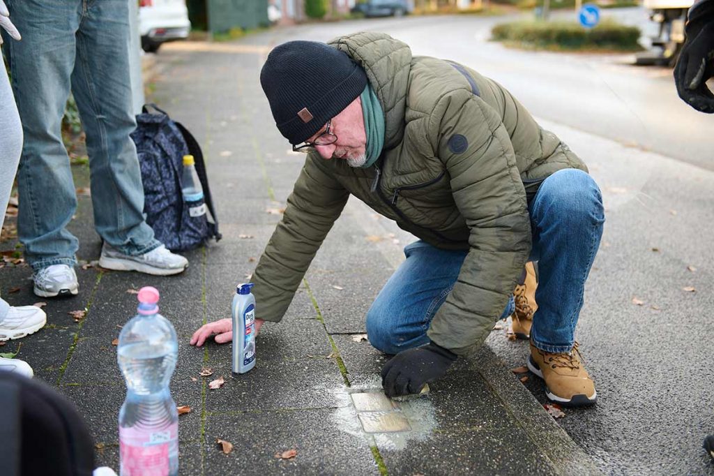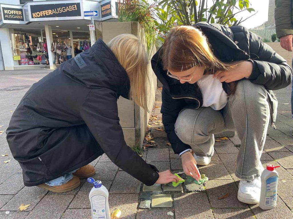 Ein zentraler Bestandteil des Projekttages war das Reinigen der Stolpersteine in der Stadt Heinsberg. Die Stolpersteine erinnern an Menschen, die in der Zeit des Nationalsozialismus verfolgt, deportiert oder ermordet wurden. Durch das Reinigen und Polieren machten die Schülerinnen und Schüler die Namen und Biografien dieser Menschen wieder sichtbar und erfahrbar. Anlässlich des Jahrestages der Reichspogromnacht am 09. November 1938 setzen wir ein deutliches Zeichen für Erinnerung, Verantwortung und Zivilcourage.